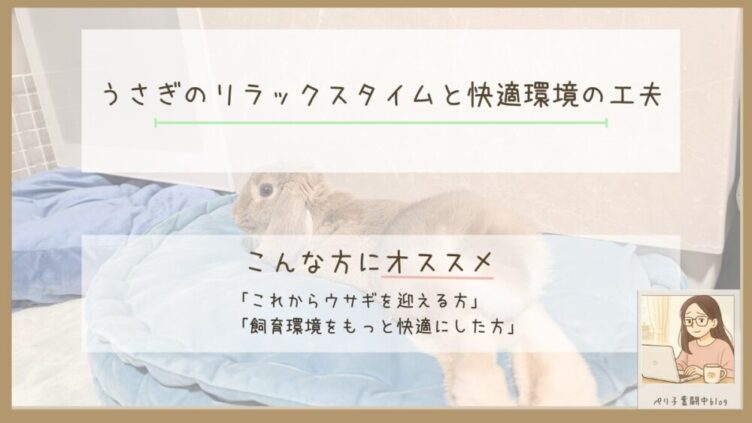 うさぎと暮らすメモ うさぎが安心してゴロン♪ のリラックスタイムと快適環境の工夫 うさぎが安心してリラックスできる環境づくりの工夫を紹介。ラグやマット、季節ごとのアイテムを使って、茶日の快適なリラックスタイムを整えた実例です。 2025.09.09 うさぎと暮らすメモ