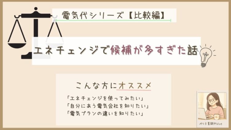 エネチェンジで電気代をシミュレーションした結果、候補が多すぎて迷った体験談を紹介。基本料金なし・解約金なし・市場価格に左右されない安心プランを選んだ理由も解説します。