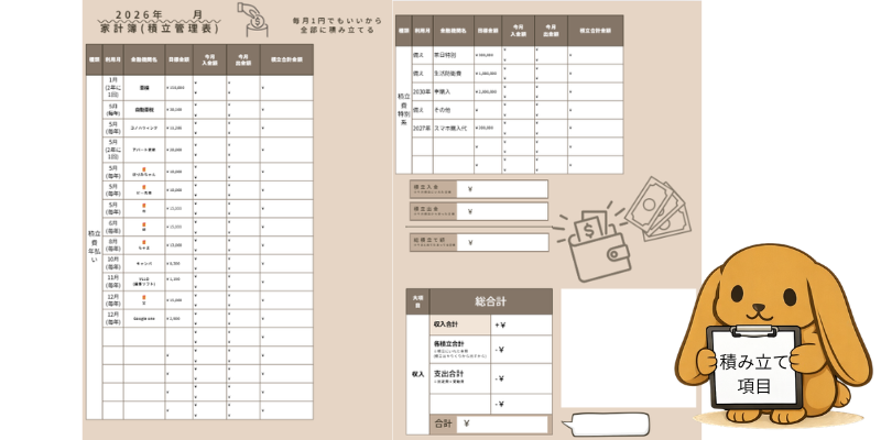 各項目に毎月1円でもいいから積み立てるようにしています。